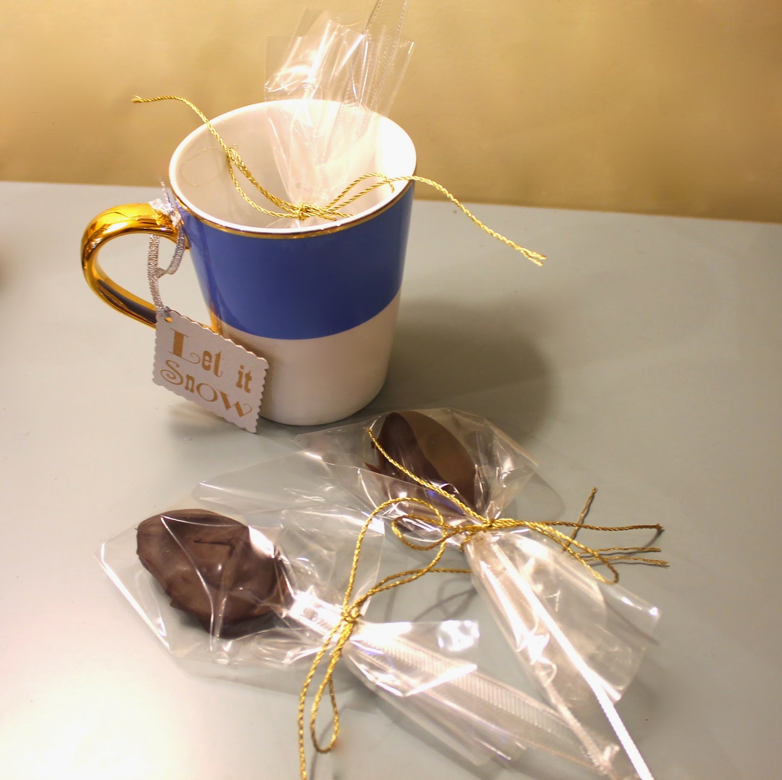 Wrap in plastic bags (I used these) and tie with festive ribbon. Then place a few in a colorful mug and tie on a pretty tag. Voila! Gift ready.