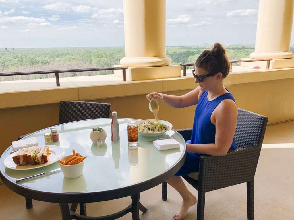 From the balcony you can see Epcot, Hollywood Studios, and Cinderella’s Castle at the Magic Kingdom! At night you have a view of fireworks at all three parks. It’s pretty cool to be able to see Cinderella’s Castle lit up at night from the balcony.