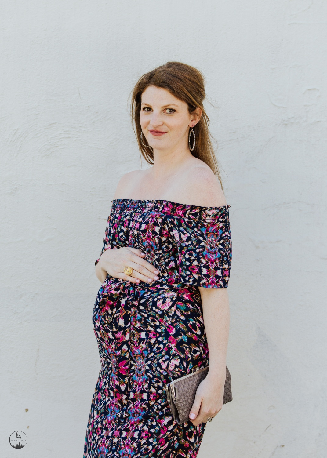 One of the best things about the trend is that you can rock it with a pregnant belly. (Actually, I’d like to give a shout out to whoever decided the trends for right now, because most of them can be flattering on a preggo!) And with a floral off shoulder print dress, especially one with a tie, it’s even more flattering!