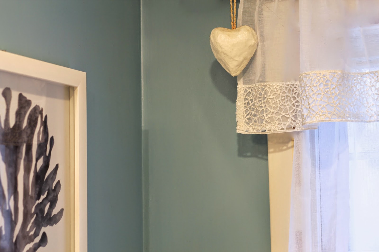 The paint in the bathroom makes the walls look teal in some light and blue in others: Exhibits A and B are here. I promise you, though, it’s somewhere in between.