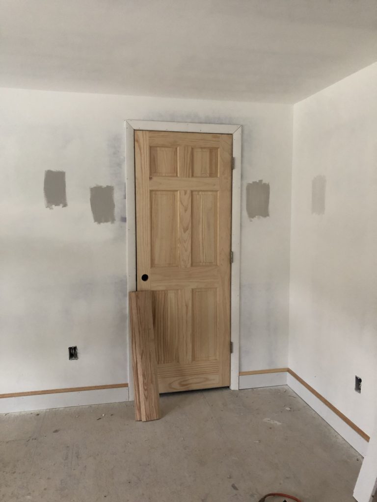 Trim is getting finished, and we have doors!