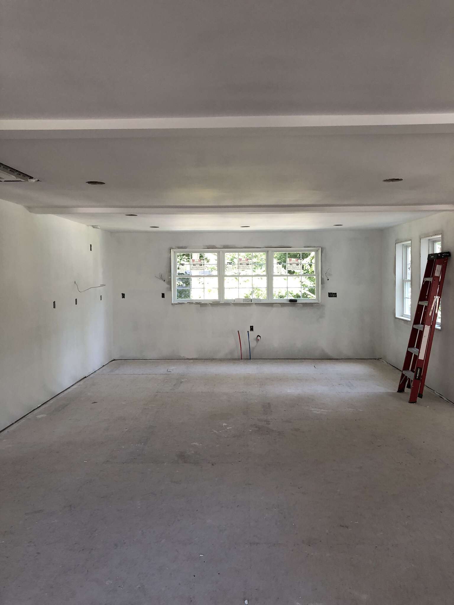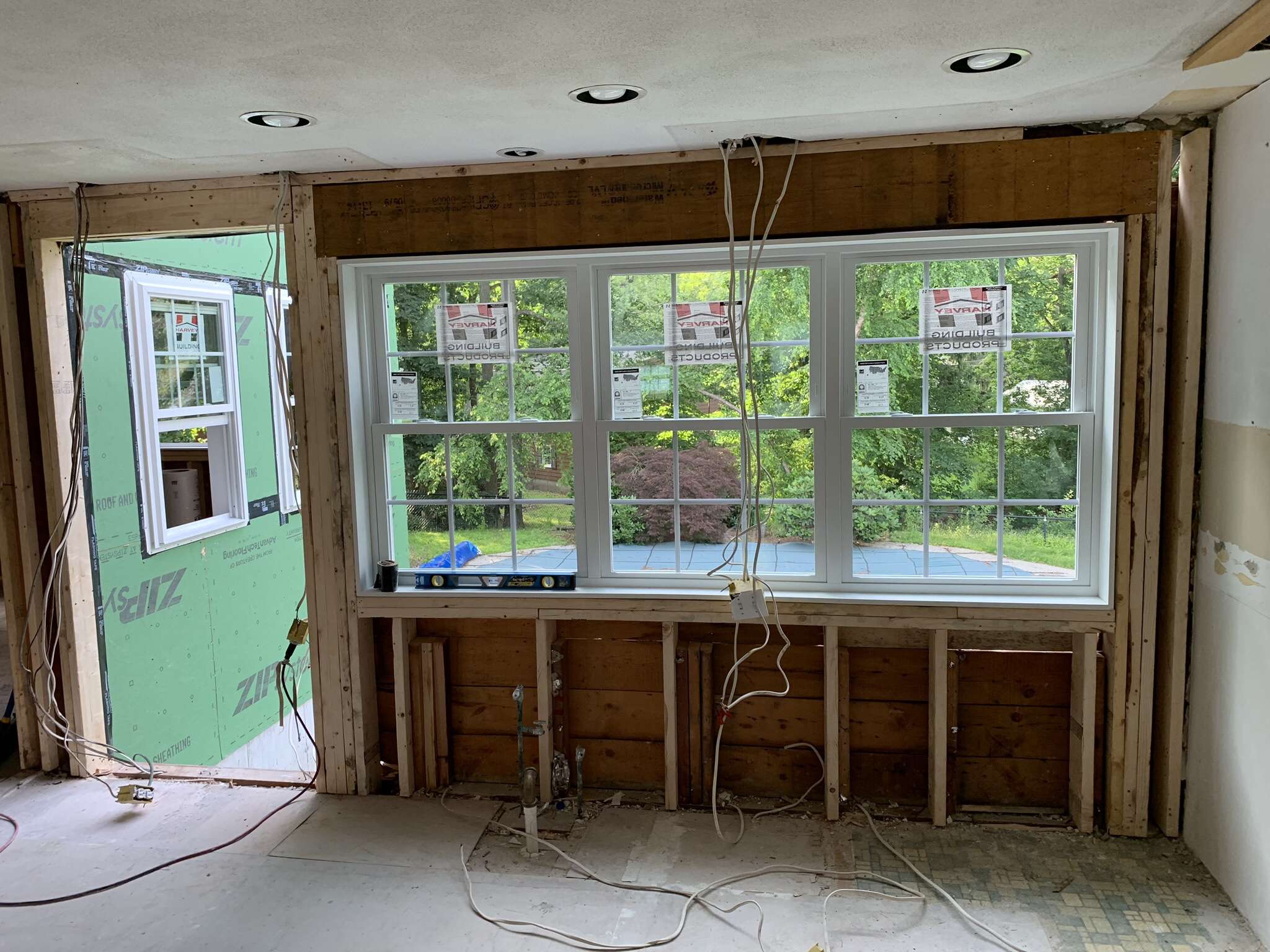This is where the old kitchen was: Gutted and now a wall of windows with a door going to the backyard!