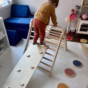 Pikler triangle and climbing ladder, stepping stones, and balance beam from Piccalio