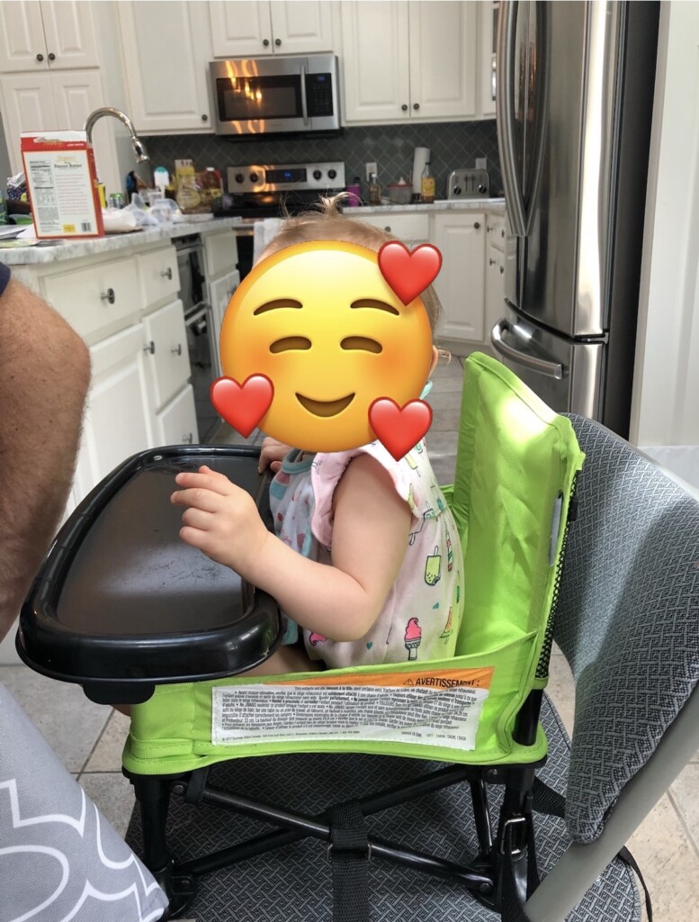When it works, it’s amazing. When it doesn’t fit the table… you’re out of luck. I love this option for trips where we know we’ll be eating at restaurants with traditional tables. But it’s a pain to bring with you and then realize the tables have an edge underneath that you didn’t see and so you can’t use the chair!