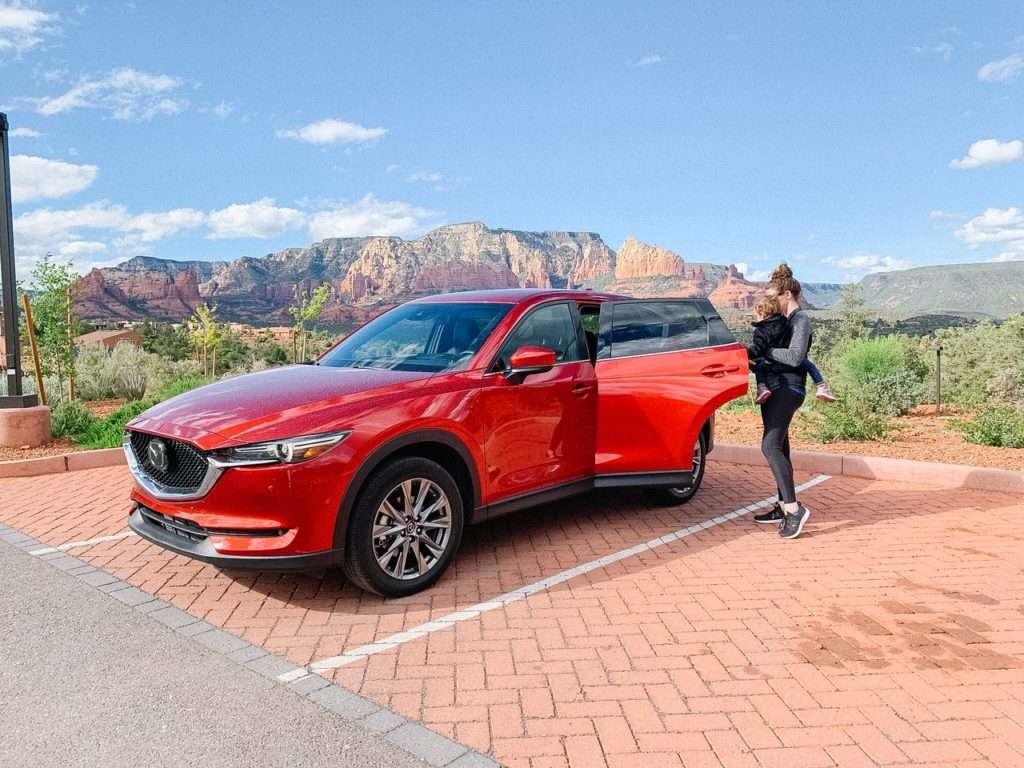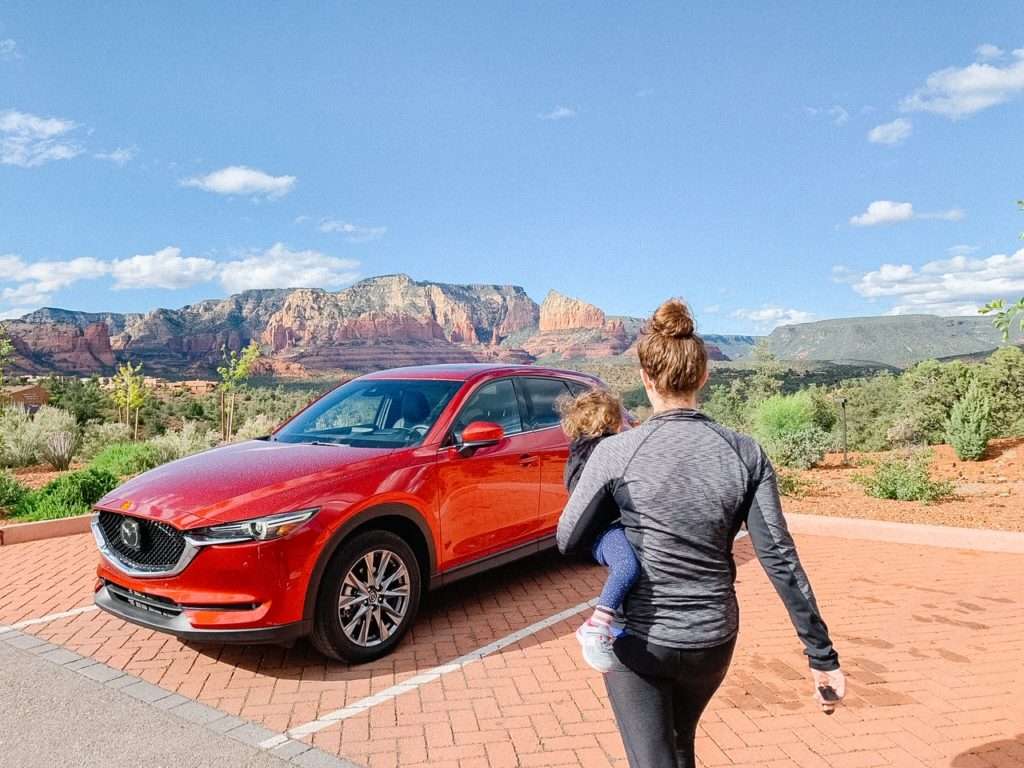 You will need a vehicle in Sedona, because everything is fairly spread out. We borrowed a gorgeous red Mazda CX-5 during our trip, and it was the perfect vehicle for this trip. E was comfy in her car seat in the back, and it was spacious enough that we could fit all of our luggage and not be at all cramped. The backseat even had a nice pull-down cup holder with USBs (SO great to charge my phone back up after a long day of travel! We flew into Phoenix and had to drive out to Sedona from there.)